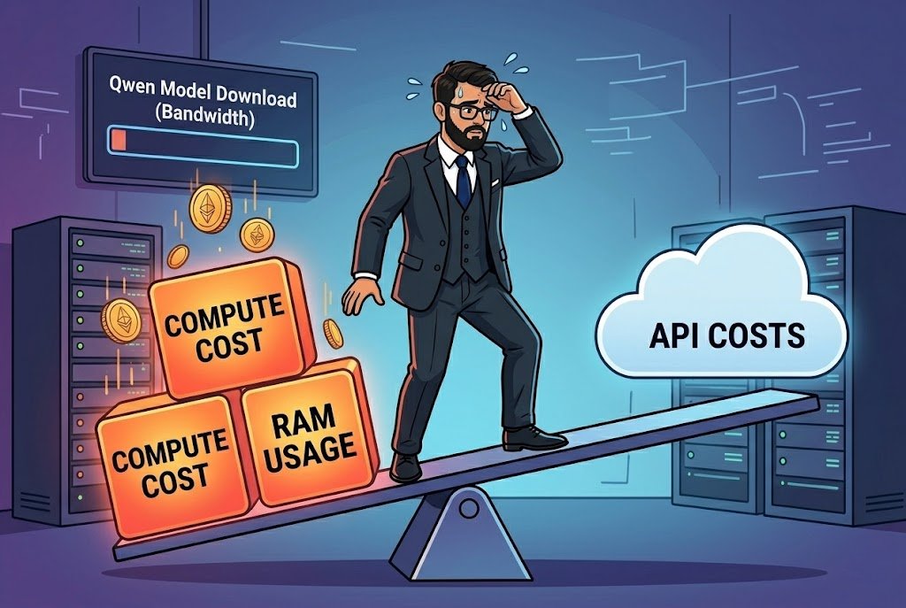 People hear "local" and think "free." It is free in terms of API costs, yes. But the compute cost shifts to user's machine. That Qwen model needs to be downloaded that's bandwidth. It needs RAM to run. It needs CPU or GPU cycles. For a web app where you're running this on a server, your infrastructure cost goes up. For desktop or Electron apps where it runs on user machine, now you need minimum hardware requirements. Either way somebody is paying.