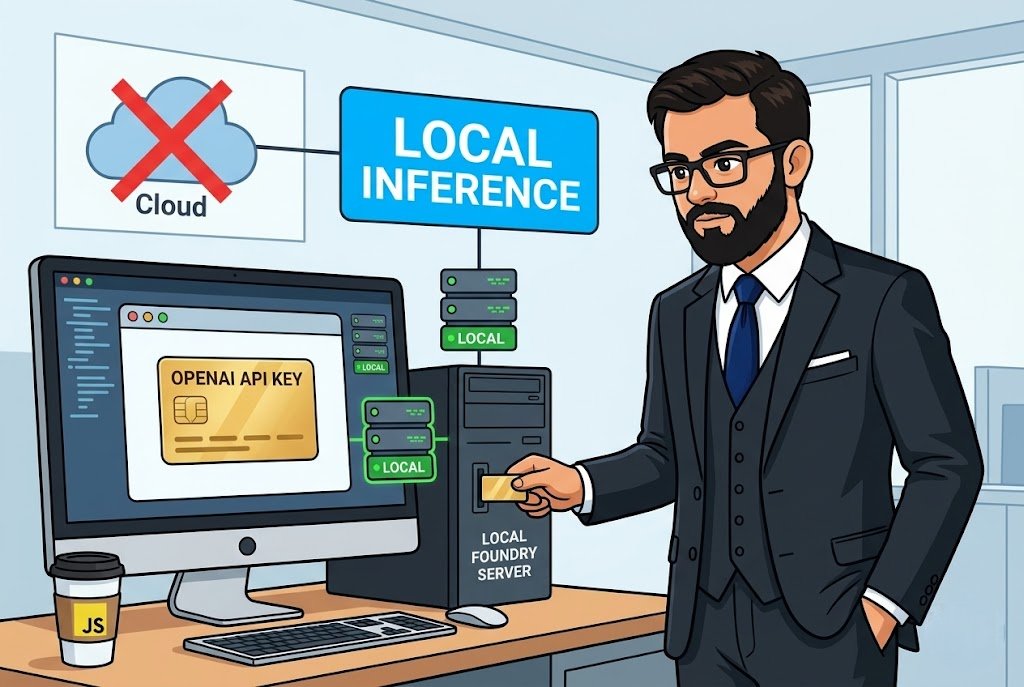 The moment I saw Microsoft drop Foundry Local, my first thought was finally, someone is taking local inference seriously for JavaScript developers. Not Python first, not C# first. Well okay, those too. But the JS/TS SDK actually works and that is saying something.